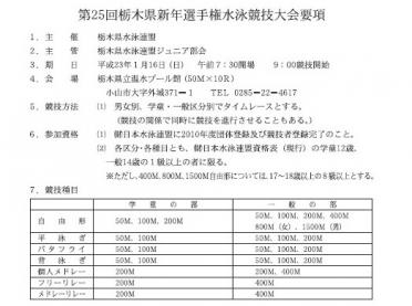 第25回栃木県新年選手権水泳競技大会について気になることや、体験記など自由にコメントしてね♪